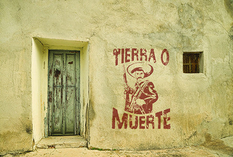 Tierra O Muerte on side of adobe building Postcard.